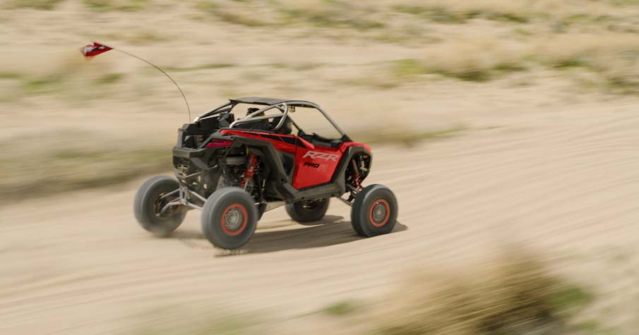 Entfessele eine Naturgewalt mit dem RZR Pro R, unserem leistungsstärksten RZR mit renn-erprobter Performance.